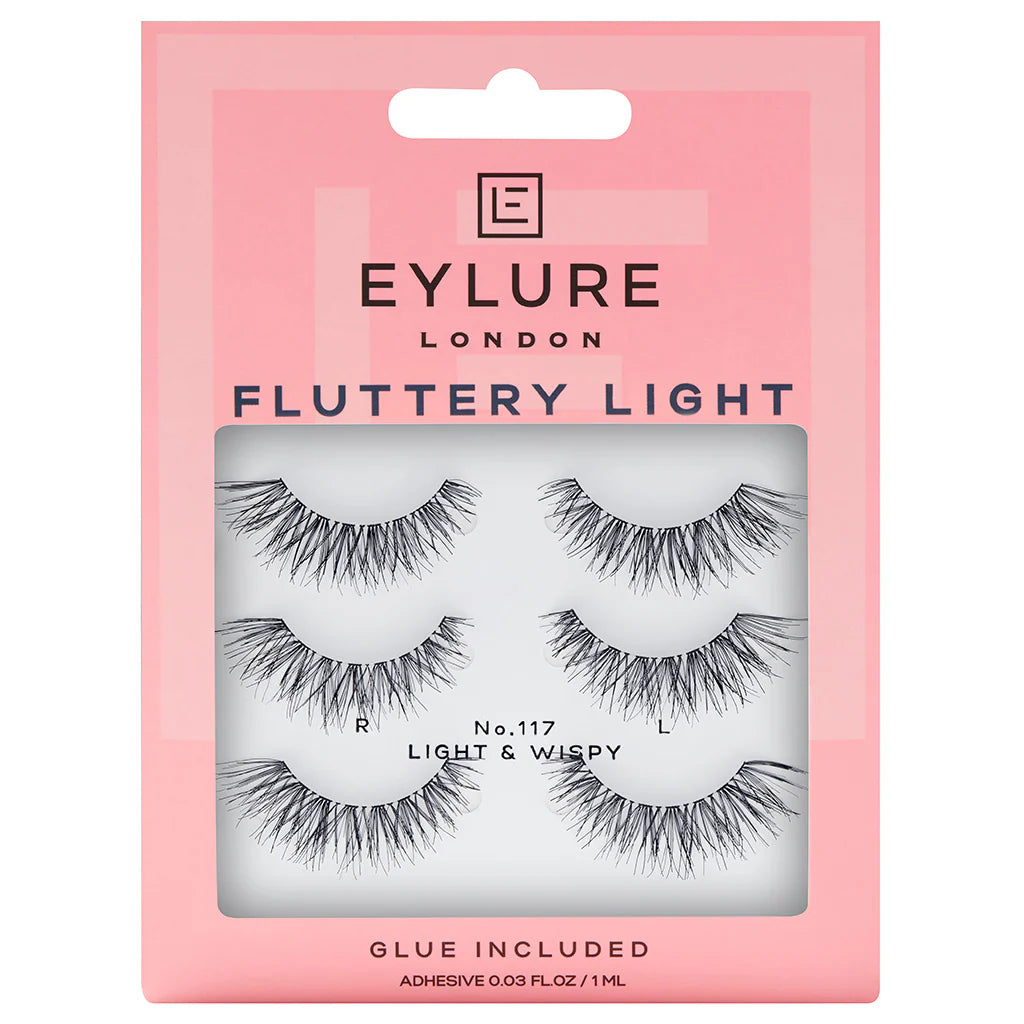 Each Eylure Fluttery Light Lashes 117 Multipack contains three pairs of lashes and one small lash glue is also included. Every order placed here at FalseEyelashes.co.uk comes with FREE Royal Mail Tracked delivery in the UK when you spend £20+. Don't delay, buy your Eylure 117 lashes now!