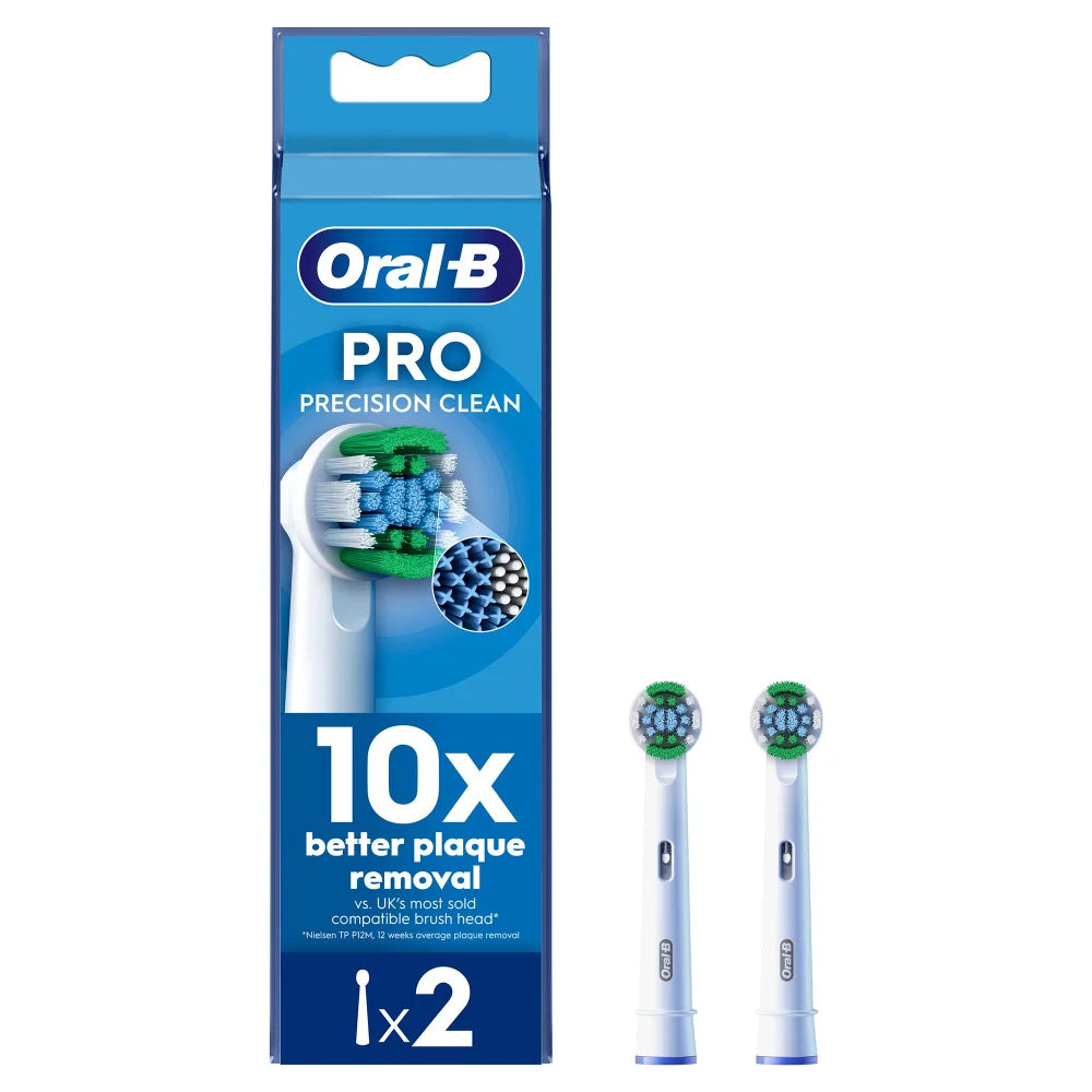 The Oral-B Pro Precision Clean toothbrush head bristles brush away plaque for a superior tooth-by-tooth clean than with a regular manual toothbrush. Oral-B genuine brush heads are designed with new X-shape bristles that clean in areas that round ones cannot reach. Its brush head usage indicator turns bristles from green to yellow showing you when to change for 100% cleaning efficacy. Guaranteed fit with Oral-B electric rechargeable toothbrushes except Pulsonic & iO toothbrushes.